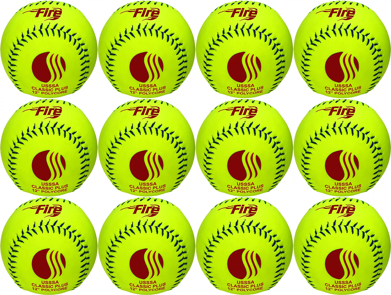 The Baden® USSSA® Classic Plus Softball is ready for all the exciting action of the coming season. This 12’’ softball features a .52 COR and 300 lbs. compression with a new Fire™ power core, improving durability and maximizing performance. The Baden® Classic Plus has a bright optic yellow color and a synthetic leather cover with blue stitching, providing a stylish look that is approved for your USSSA® league.