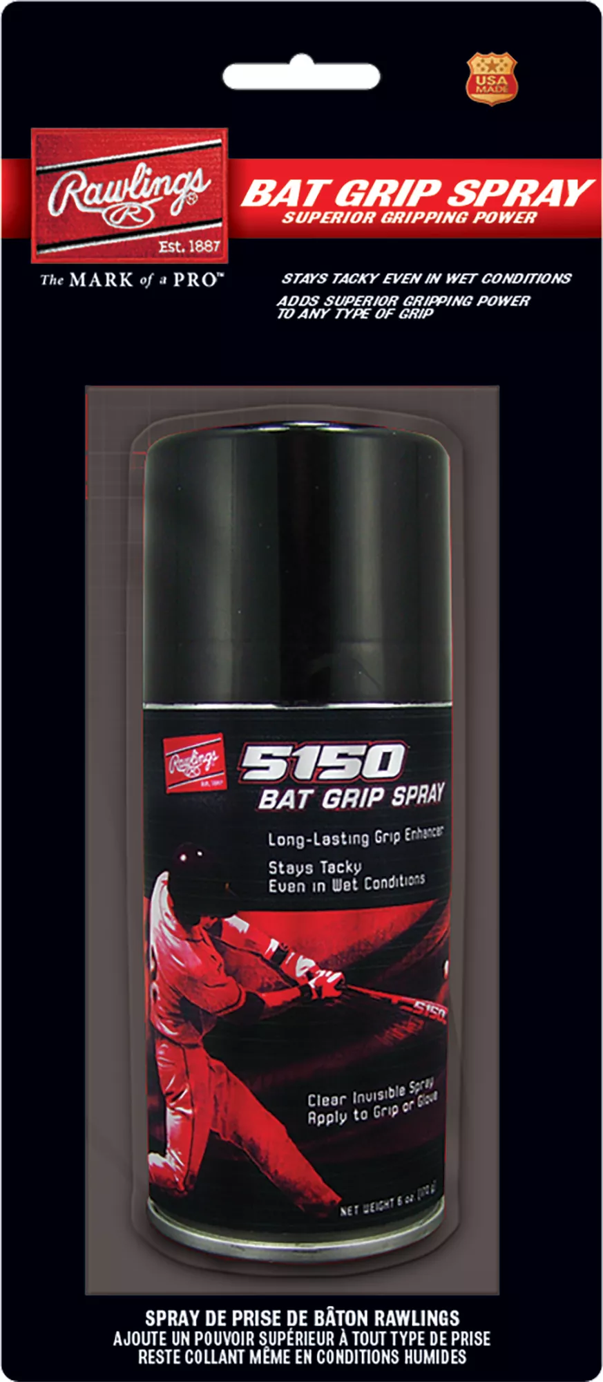 Rawlings Bat Grip Spray adds tack to bat handles, and it goes on clear. Stays tacky in any weather conditions.