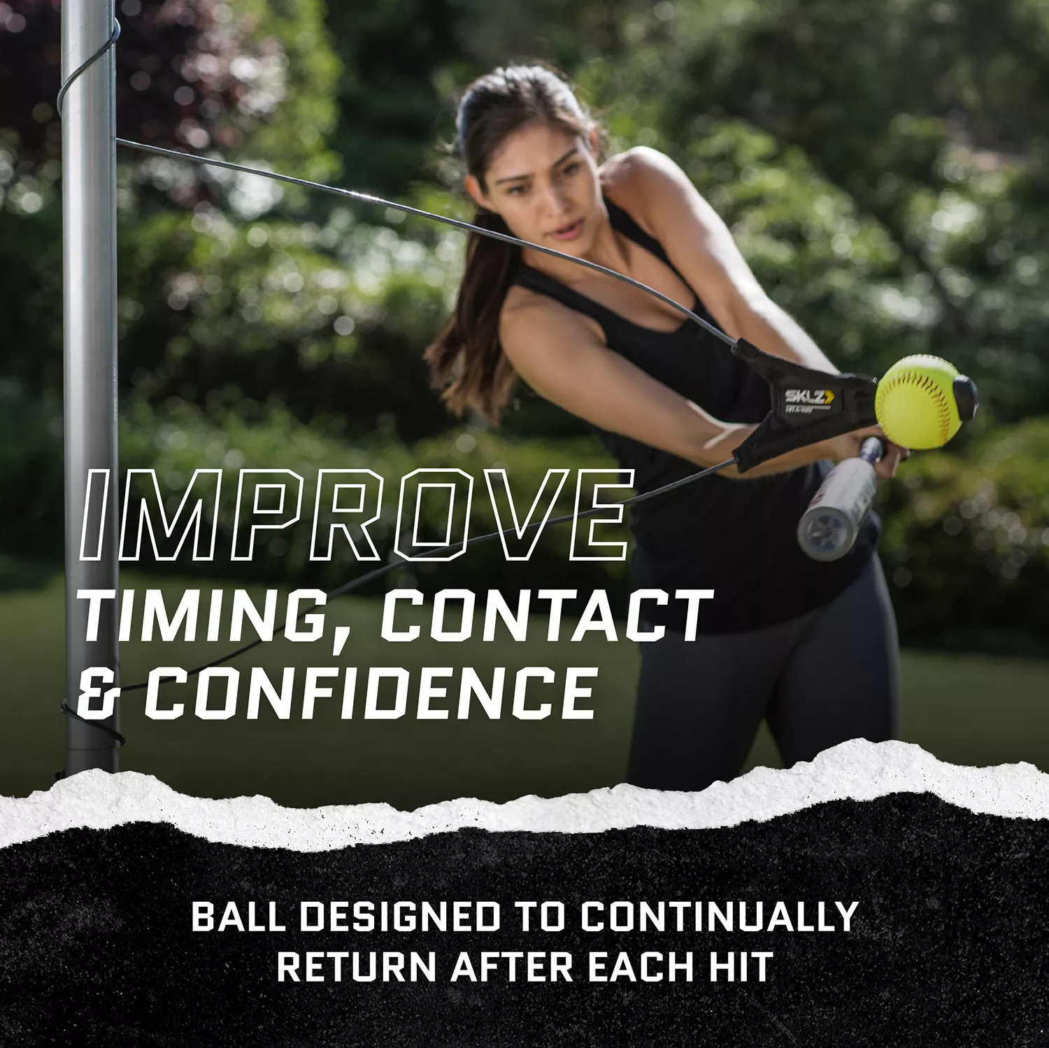 Practice your swing virtually anywhere with the SKLZ® Hit-A-Way Portable Training Station. Padded feet lock to keep the 5’ mobile pole in place throughout training. The all-in-one pop up design makes for easy transportation and storage. Solid construction will endure heavy use.